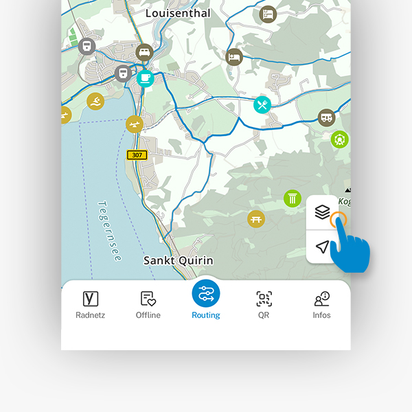 POI ist die Abkürzung für Point of Interest. Dies sind Punkte entlang deiner Route, die für dich interessant sein können wie bspw. Biergärten, Schwimmbäder oder auch Reparaturstationen für dein Rad. POIs kannst du über die Karteneinstellungen ein- und ausblenden.